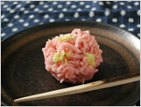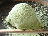 | 新春から桜の咲く頃まで販売している商品です。通年販売している定番商品の「わら び餅」が食感を楽しむのに対し、本わらび粉だけで作った皮でこしあんを包んだこの「本わらび」は、純粋にわらび粉の風味を楽しめるのが特徴です。やわらかめに炊いたこしあんの口どけもさることながら、わらび粉と黒須きな粉の組み合わせは最高です。 |